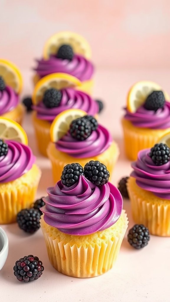 Lemon Poppy Seed Cupcakes with Blackberry Frosting