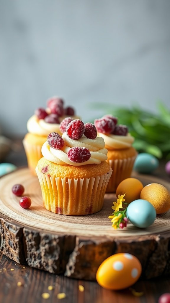 These cranberry orange cupcakes are a delightful treat for Easter. Topped with a swirl of creamy frosting and festive berries, they look as good as they taste. For an easy recipe, check out the full details on Cranberry Orange Cupcakes with Festive Garnish!