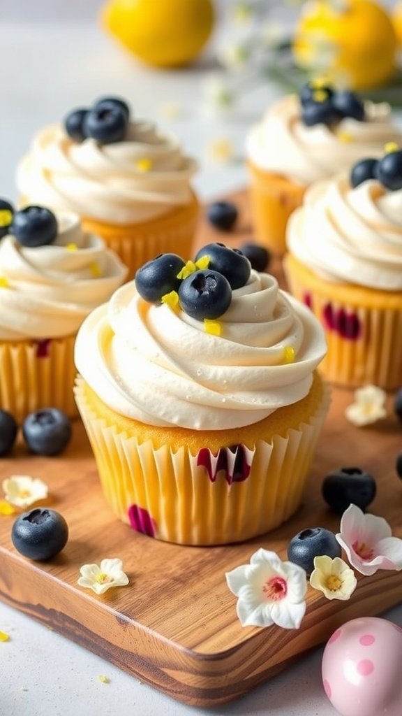 Brighten up your Easter table with these delightful zesty lemon blueberry cupcakes. Topped with creamy frosting and fresh blueberries, they are a treat everyone will love. You can find the recipe for these tasty cupcakes here!
