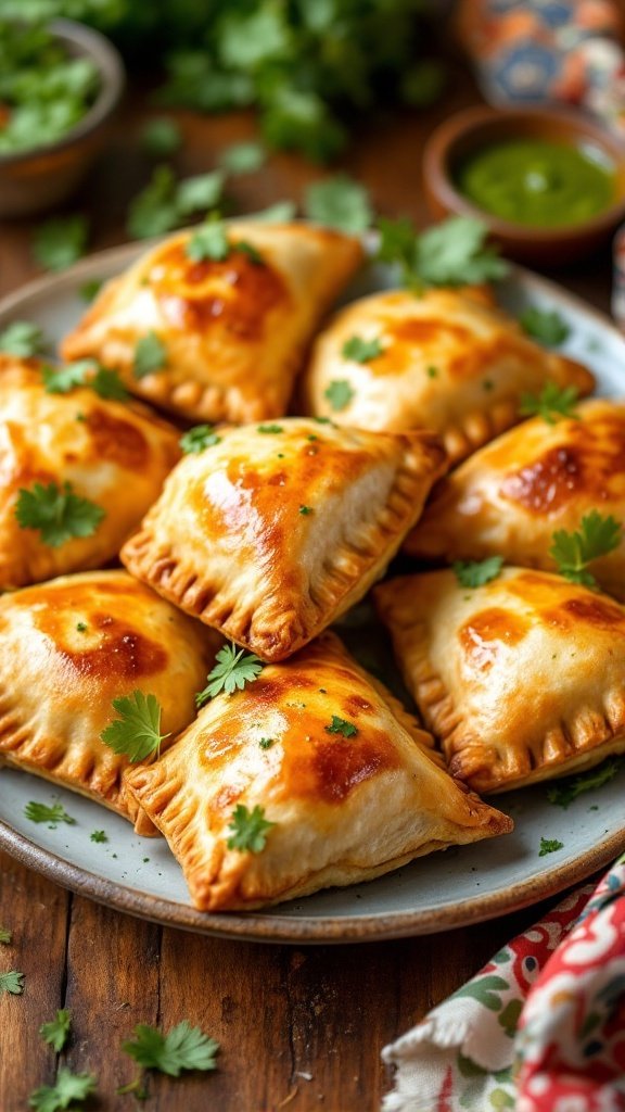 Garnishing with fresh cilantro not only adds a pop of color but also complements the spices within the filling.