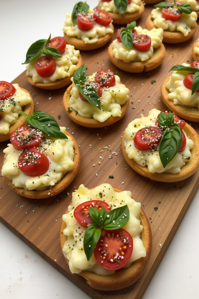 These bites impress with their crisp, golden exterior and a medley of fresh, zesty toppings. The vibrant pesto and classic Caprese elements make this recipe a refreshing and reliable favorite for any event.