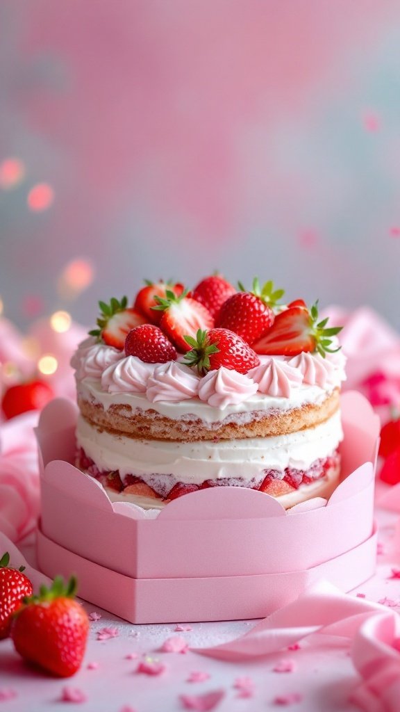 So next time you’re looking to add a touch of charm to your dessert table, consider this beautifully decorated strawberry birthday cake in a box. It’s sure to be a topic of conversation, merging taste and aesthetics in a delightful manner.