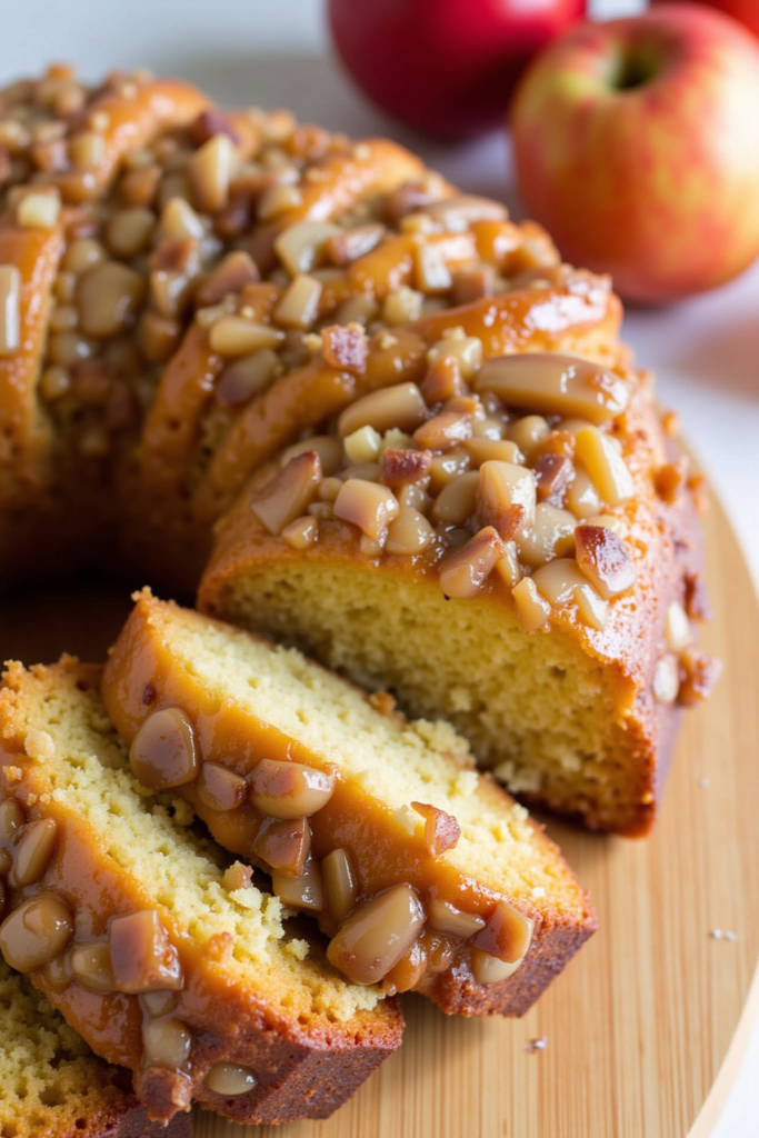 A standard loaf yields about 8-10 slices. Each serving (without glaze) contains roughly 220-260 calories, depending on the apples and sugar used. The optional glaze adds a hint of extra sweetness—a little goes a long way!