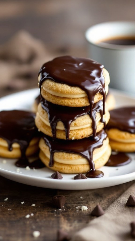 - Drizzle or dip the filled cookies in the chocolate ganache and let them set on a wire rack.