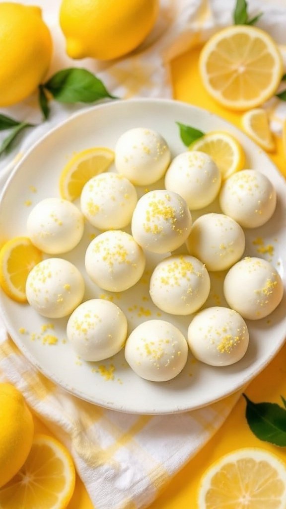 These truffles are as visually appealing as they are delicious. Arrange them elegantly on a decorative plate, dusted with lemon zest for a vibrant touch. Accompanying whole lemons and lemon slices not only enhances the aesthetics but also emphasizes the fresh ingredients used.