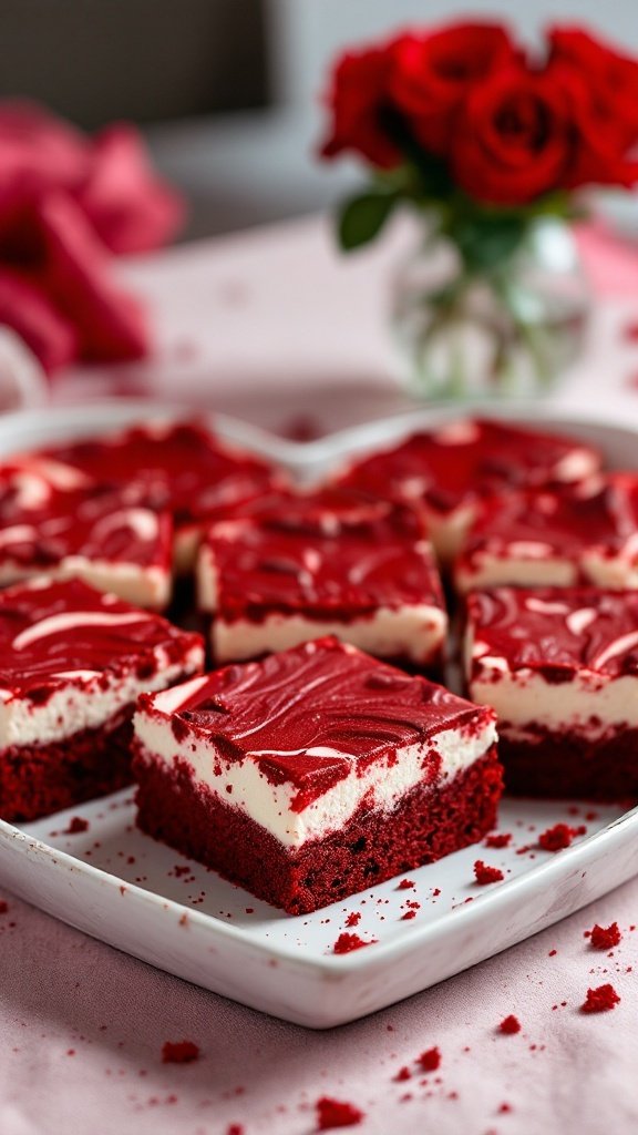 Imagine a cozy setting where a heart-shaped plate cradles these decadent brownies, surrounded by delicate red roses. The presentation is as important as the treat itself, especially for occasions like Valentine’s Day.