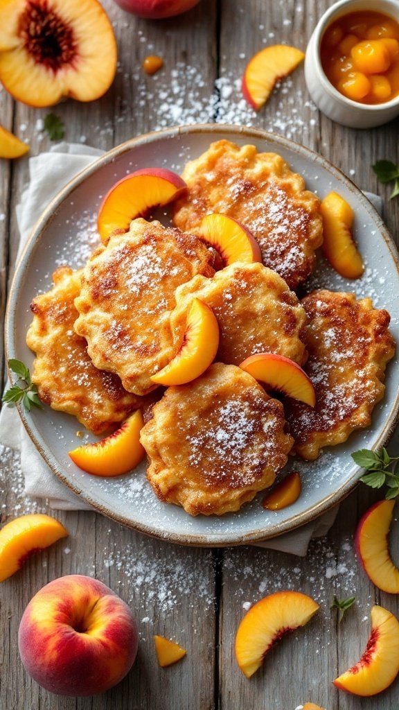 For an added layer of flavor, serve these peach fritters with a small bowl of peach compote on the side. This simple addition enhances the visual appeal while inviting everyone to indulge in this delightful peach dessert.
