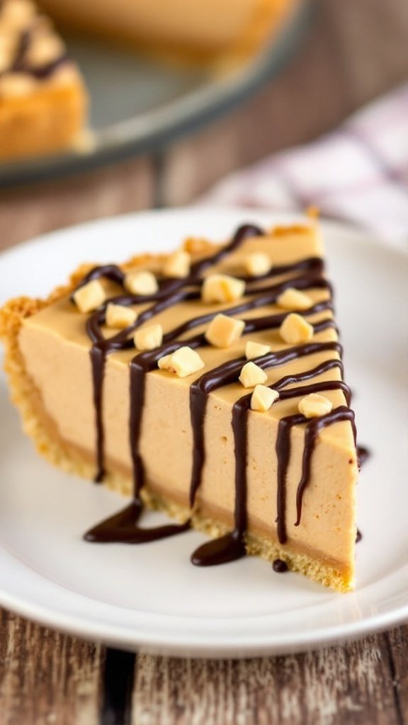 - Serve: Once set, slice the pie and drizzle with chocolate syrup and sprinkle chopped peanuts on top if desired. Enjoy your no bake peanut butter pie!