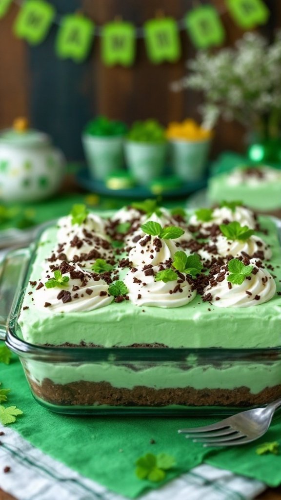 - Serve: Before serving, garnish with chocolate shavings or mint leaves for a festive touch. Cut into squares and enjoy your Shamrock Lasagna!