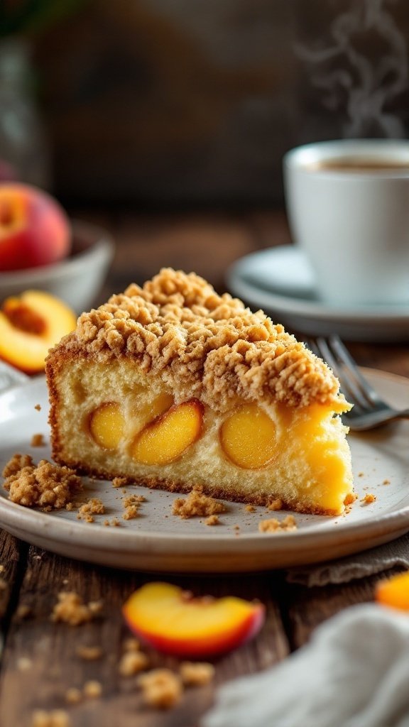 No slice of Southern Peach Crumb Cake would be complete without a cozy beverage to accompany it. A steaming cup of coffee elevates the experience, balancing the cake’s sweetness and enhancing the overall enjoyment.
