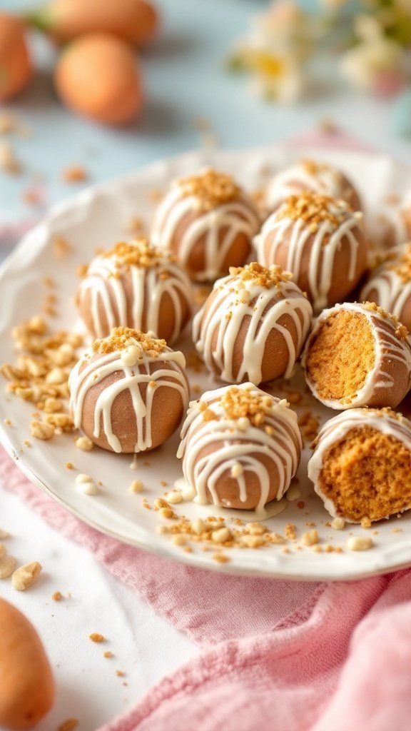 With the vibrant colors of spring reflected in the pastel backdrop and the charming presentation of these truffles, they are perfect for Easter celebrations. Each bite delivers a taste of traditional carrot cake, ensuring that your guests will be coming back for more.