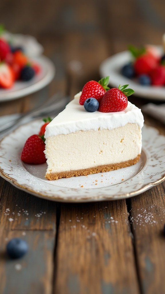 Using vibrant fruits like strawberries, blueberries, or raspberries adds both color and freshness to the dessert, making it an inviting centerpiece for any table. Enjoying a slice of this marshmallow whipped cheesecake is sure to be a delightful experience for anyone who loves cheese desserts.