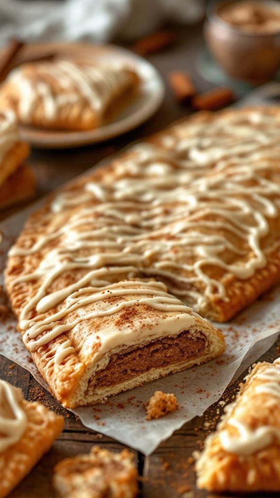 Imagine the warm light filling your kitchen as you present the Giant Brown Sugar Cinnamon Pop Tart on a rustic wooden table.