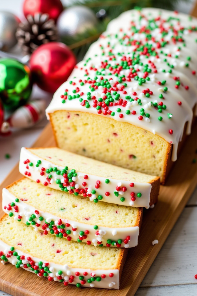 - Mix powdered sugar and milk for the glaze. Drizzle over cooled bread and decorate with candied fruit or sprinkles.