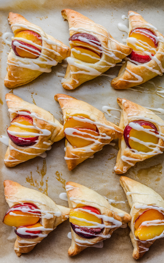 Layer your sliced peaches artfully atop each pastry base, slightly overlapping for visual appeal. Before baking, brush pastry edges with an egg wash to encourage that coveted golden color.