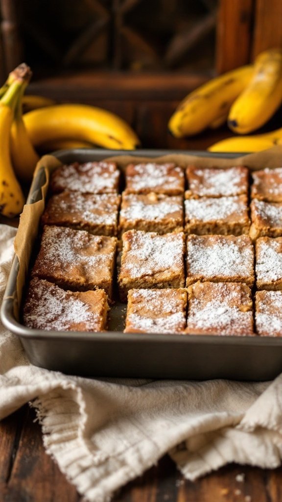 Whether you’re hosting a casual gathering or simply indulging at home, these bars can easily be prepared in advance. The rich banana flavor combined with the dusting of powdered sugar creates a visually appealing presentation, making them a charming addition to any table setting.