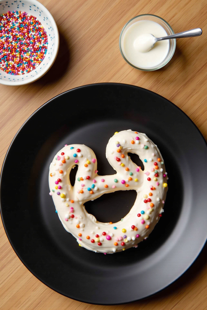Serve your pretzel warm, either whole or sliced, with a variety of dips—honey mustard, cheese, or chocolate hazelnut spread—for a sweet and savory New Year’s Eve snacking platter. For an extra celebratory touch, dust it with edible gold sprinkles or write the year in frosting for a show-stopping midnight centerpiece.