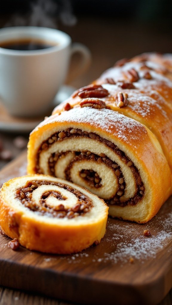 Once baked to perfection, allow the roll to cool slightly. Before serving, a light dusting of powdered sugar brings an elegant touch, making it look as inviting as it tastes. The experience of slicing into the roll reveals its beautiful swirled interior, showcasing the rich pecan filling that awaits.