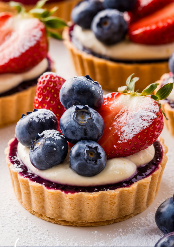 What sets these tartlets apart is the marriage of silky-smooth vanilla filling and a juicy, sweet-tart berry topping. The crisp crust gives way to a cloud-like cream, while the fresh berries add color and a pop of natural sweetness. The individual tartlets are portable, easy to serve, and each one is a tiny work of art that’s almost too pretty to eat.