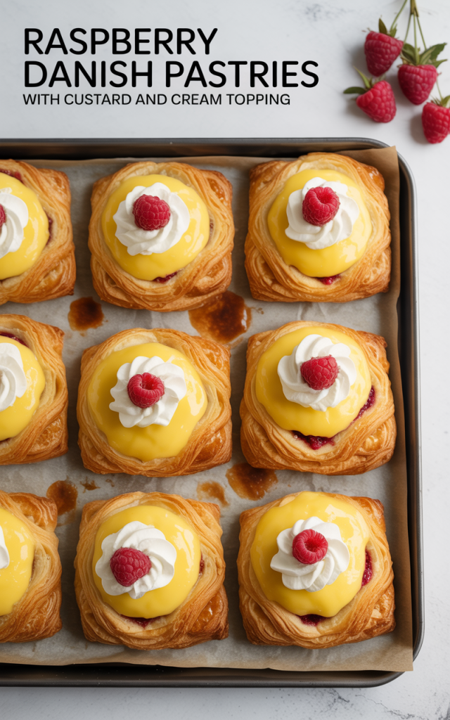 This recipe yields 8 generous squares. Each Danish typically contains around 280–330 calories, depending on the quantity of filling and curd per portion. Thanks to its fresh fruit and moderate sweetness, it’s a dessert you can savor any time of day.