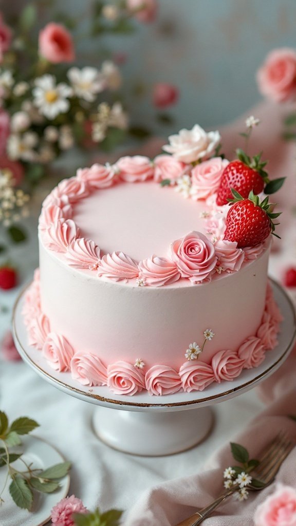 Vintage Rose Cake with Strawberries