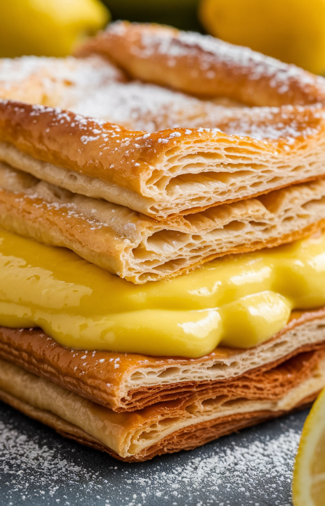 This recipe stands out for its vibrant lemon filling, which delivers a fresh, zesty kick complemented by the delicate crunch of golden puff pastry. The creamy lemon layer, nestled inside flaky pastry, creates a bright, refreshing dessert that satisfies both sweet and tart cravings. It’s an easy yet elegant sweet that tastes as beautiful as it looks.